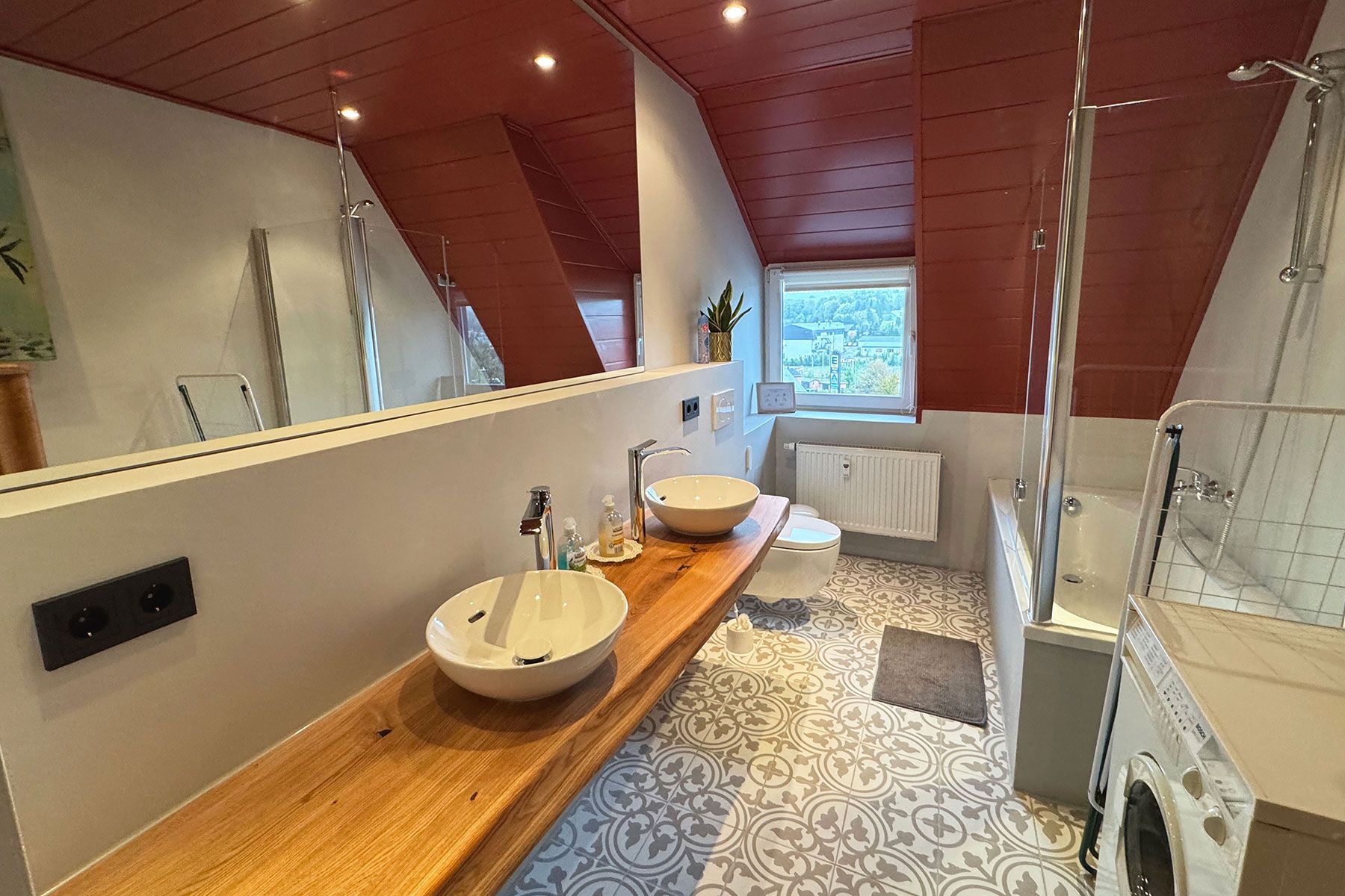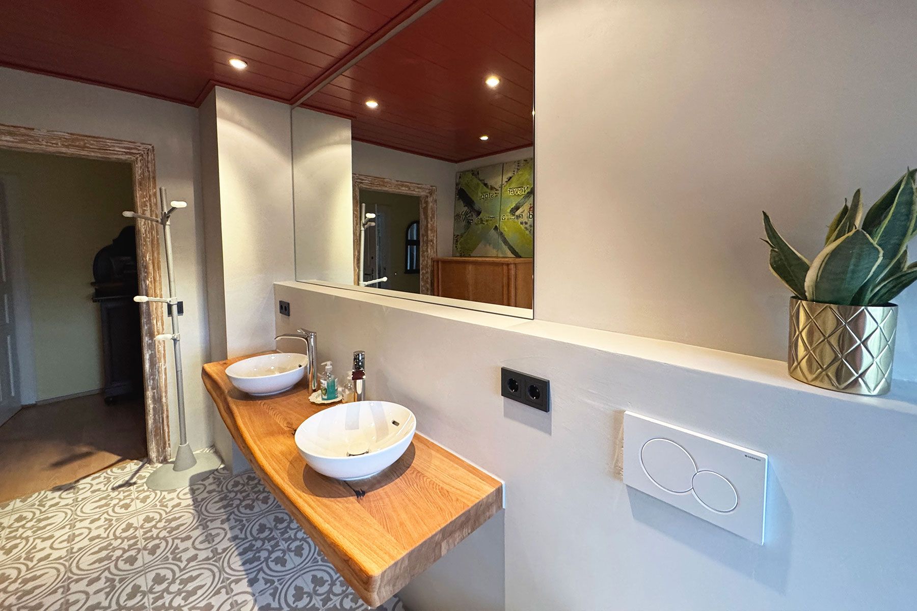 Du wachst auf in einem dieser Räume, in denen selbst die Luft so tut, als sei sie künstlerisch begabt. 140 Quadratmeter Inspiration, verteilt auf vier Schlafzimmer. Die Küche riecht nach frisch gebrühtem Kaffee und kreativen Entscheidungen, das Bad ist neu saniert und glänzt mit Badewanne, zwei Waschplätzen und seinem dusch-WC wie eine Idee kurz nach der Vollendung. Vier Fernseher stehen bereit, als hätten sie sich verschworen, dich beim Nichtstun zu unterstützen. Das WLAN – natürlich gratis – fließt durch die Wände wie gute Laune nach dem dritten Espresso. Draußen: ein Garten, groß genug, um darin Gedichte zu verlieren. Mit Grillstelle, Feuerstelle, Gemüsegarten, eigenem Hühnerstall, Beerendickicht und Obstbäumen, die im Sommer frech ihre Früchte in deine Richtung recken. In 150 Metern Entfernung: Läden, die alles haben, was du vergessen hast. Noch näher: Hühner, die Eier legen. Und wenn du genug vom Schauen und Schnabulieren hast, wartet eine Sauna, ein Fitnessraum und – in den wärmeren Jahreszeiten – ein Pool, der größte Saunabottich des Erzgebirges. Im Winter hingegen verwandelt sich alles drumherum in ein leises, weißes Abenteuerland für Wintersport und warme Gedanken. Ein Ort, an dem du leicht vergisst, dass das echte Leben woanders weitergeht.