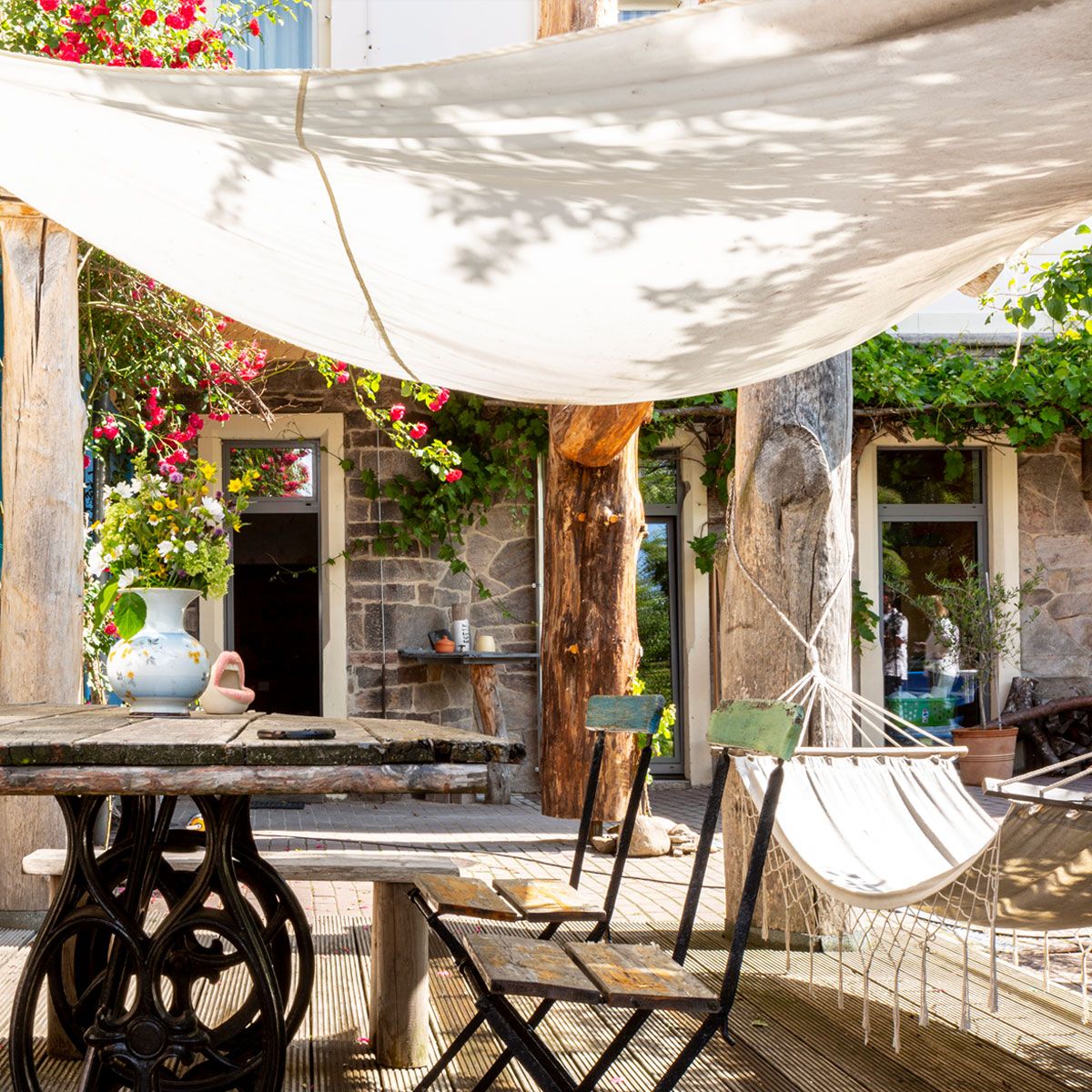 mit urigem kaminholzofen und idyllischen turmzimmer? mit sauna und fitnessraum? obwohl der marktplatz nur drei gehminuten entfernt ist, relaxt du im 2.000 quadratmeter großen gemeinschaftsgarten mit mehreren grillmöglichkeiten, terrasse, lagerfeuerplatz und eigenem hühnerstall. starte gut in den tag – mit duftendem kaffee und frischen bioeiern.